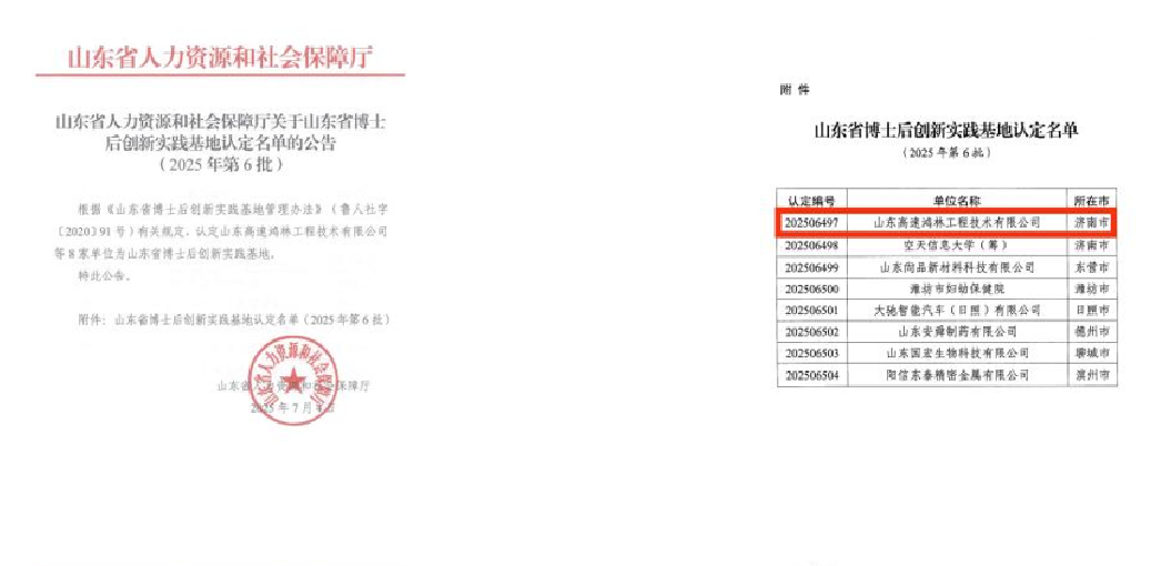 近日,經(jīng)山東省人力資源和社會保障廳批準,山東高速鴻林工程技術(shù)有限公司成功獲批設(shè)立“山東省博士后創(chuàng)新實踐基地”。這標志著公司在高層次科研平臺建設(shè)與創(chuàng)新型人才培養(yǎng)方面取得新的突破。